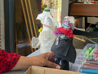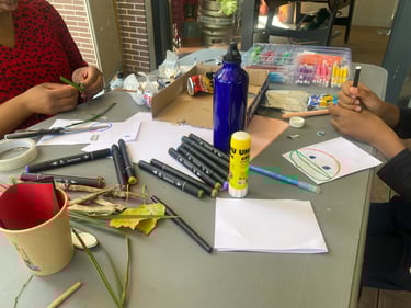 A partir de la forme spectacle du Théâtre de Valise, Esther Landrier développe également des ateliers théâtre d'objet, marionnette et zéro déchet, pour initier les participant.es à exercer leur regard créateur et théâtral. A partir de matériaux de récupération (naturels, déchets propres, objets du quotidien détournés), les participant.es sont amenés à construire leurs propres marionnettes ou objets manipulables, et à leur donner corps, voix et enjeux.